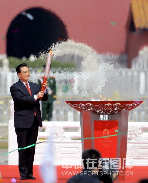 图片 奥运火炬接力启动 胡锦涛主席点燃圣火盆_篮球比分_足球比分-中国竞彩网官网推荐